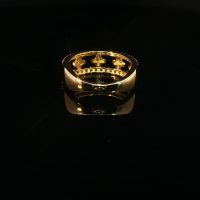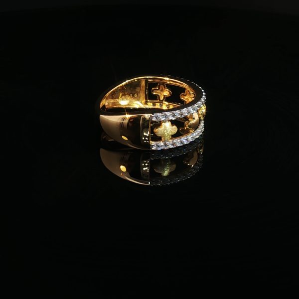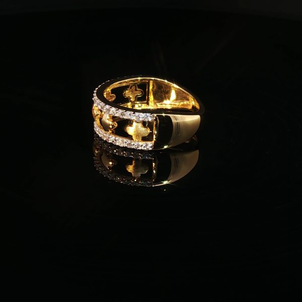 A radiant 22K yellow gold band ring adorned with sparkling round-cut cubic zirconia, creating a timeless and sophisticated design. Perfect for everyday wear or layering with other rings for a refined look.