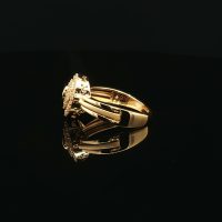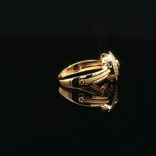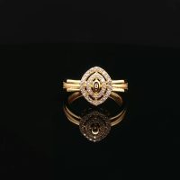 Crafted in 22K radiant yellow gold, this multistone ring balances modern aesthetics with timeless elegance. A refined accessory that adds sophistication and sparkle to any outfit.