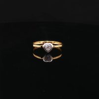 Embrace timeless elegance with this captivating solitaire ring, showcasing a heart-shaped cubic zirconia with a brilliant cutting style. Set in a lustrous 22K yellow gold band, this ring exudes sophistication. A dazzling expression of love, it is designed to capture the heart and illuminate any occasion.