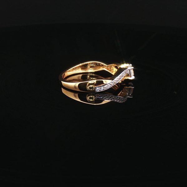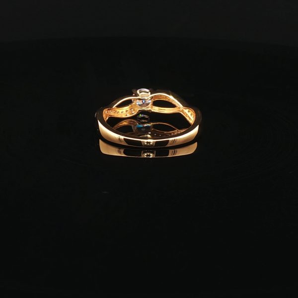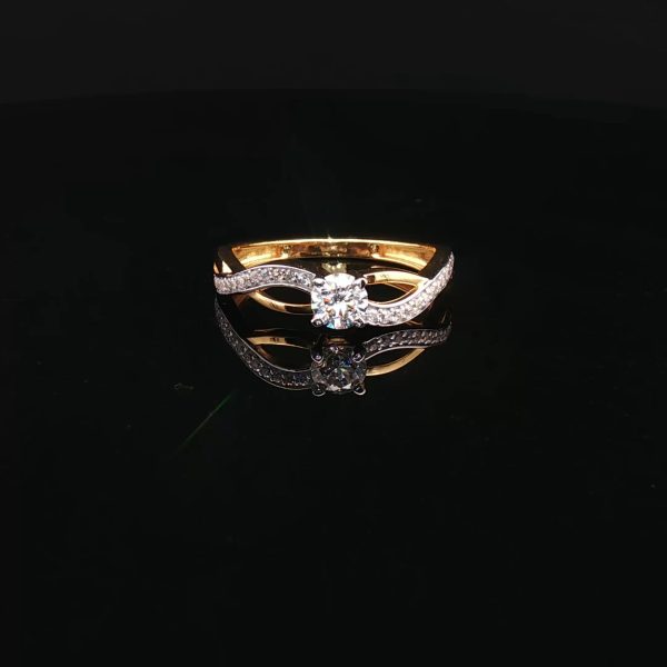 Elevate your style with this 22K yellow gold solitaire ring featuring a round brilliant-cut cubic zirconia. The infinity-style swirling design enhances the sparkle, creating a seamless flow of elegance. This sophisticated piece combines modern refinement with timeless charm, making it a standout statement for any occasion.